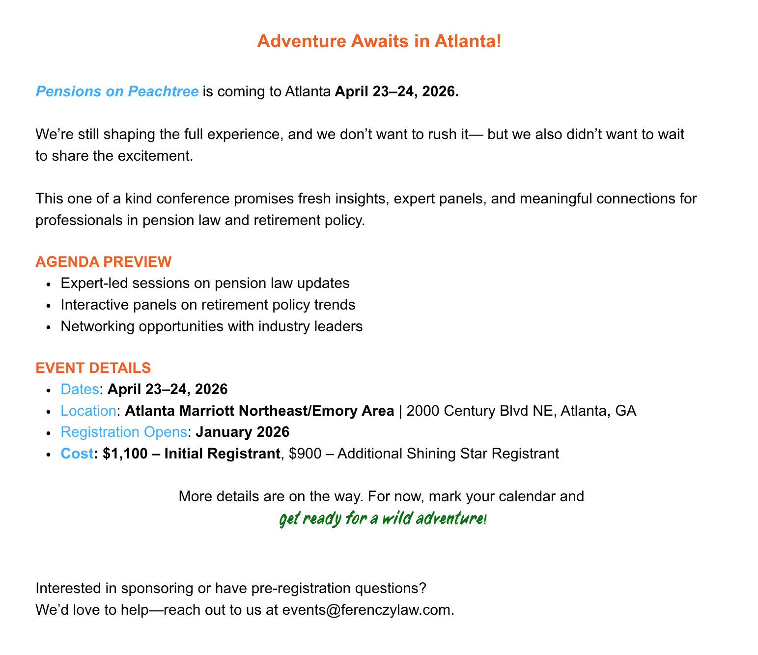 Trek through 2 wild days of ERISA learning with FBLC, earn up to 15 CE credits, and connect with top attorneys, actuaries, TPAs and financial advisors.